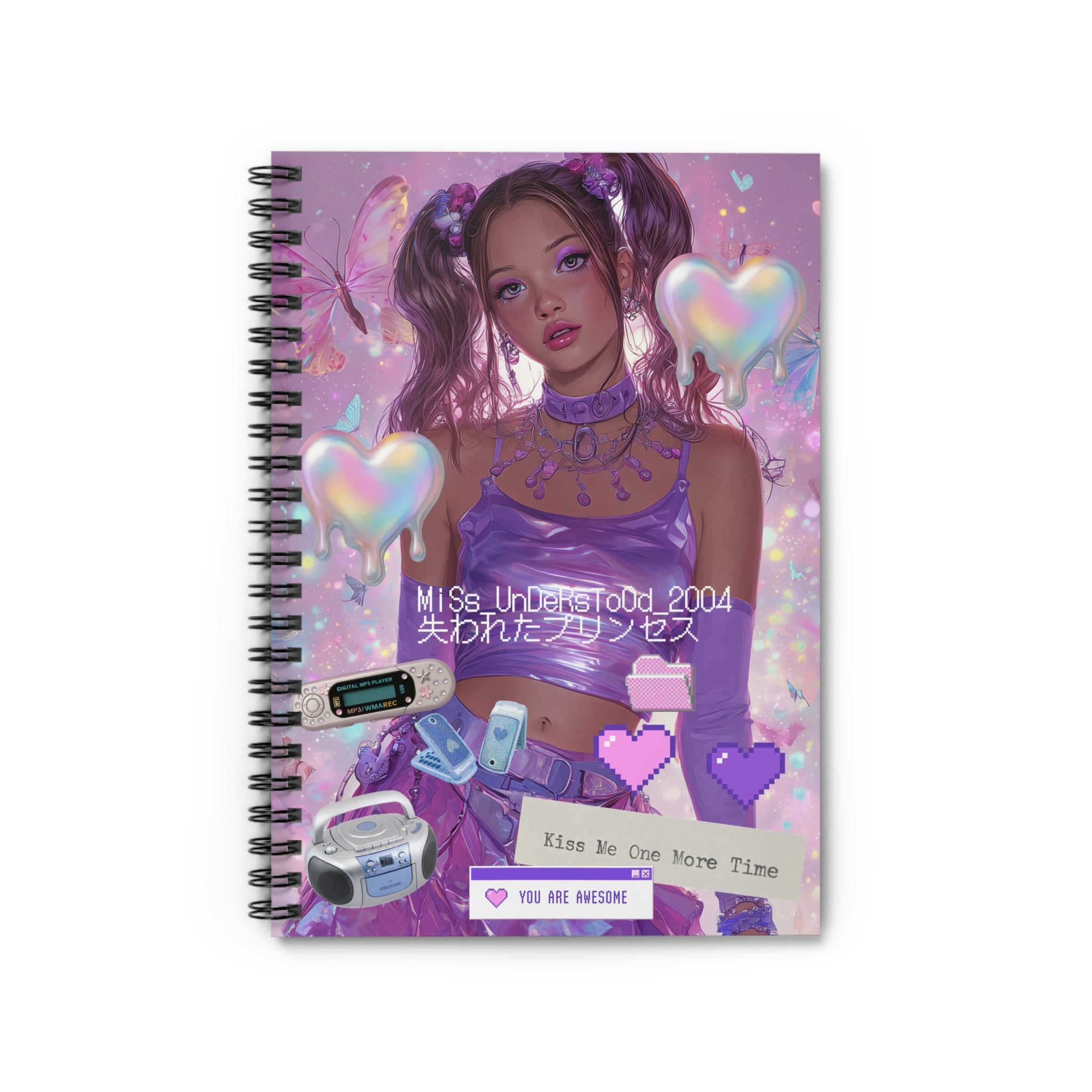 For those who grew up too online to ever log off. This spiral notebook captures the surreal beauty of early-internet adolescence — dreamy, pixel-soft nostalgia meets existential reflection. A vaporwave homage to an era of dial-up emotions and glittering MySpace hearts (no brands, no endorsements — just vibes and memory).