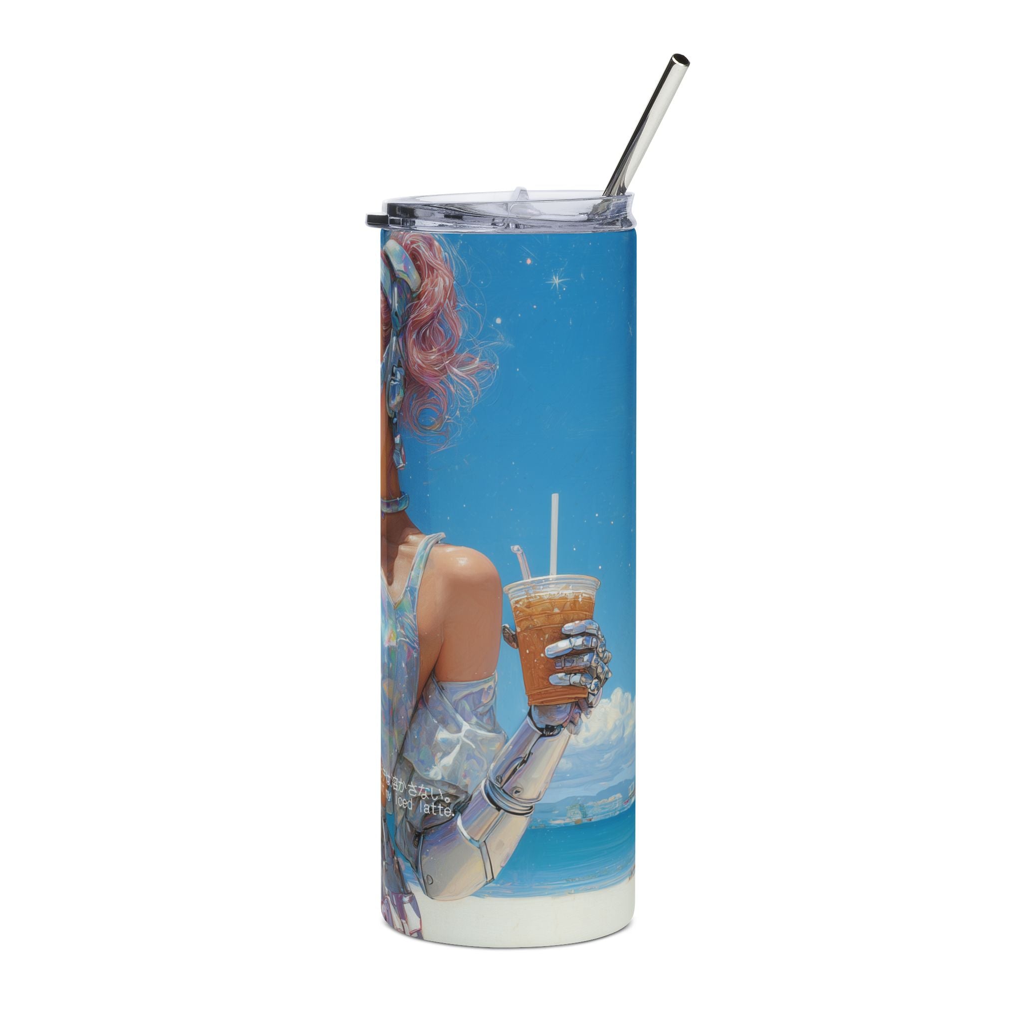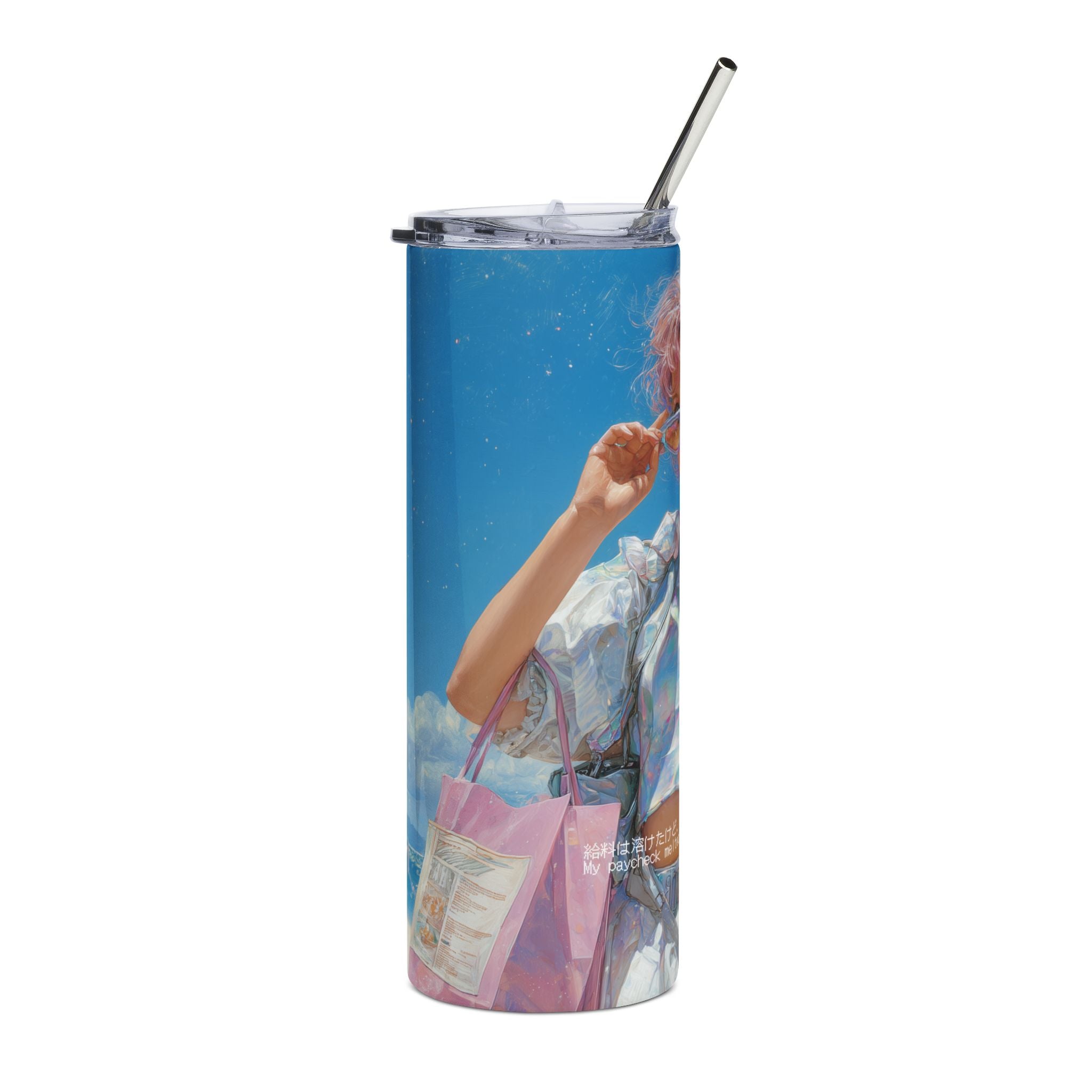 耐久性のあるステンレス製ボディと光沢のある仕上げが、日常のストレスも資本主義の熱もシャットアウト。20ozの容量で、カフェラテも夢も皮肉もすべて持ち歩けます。